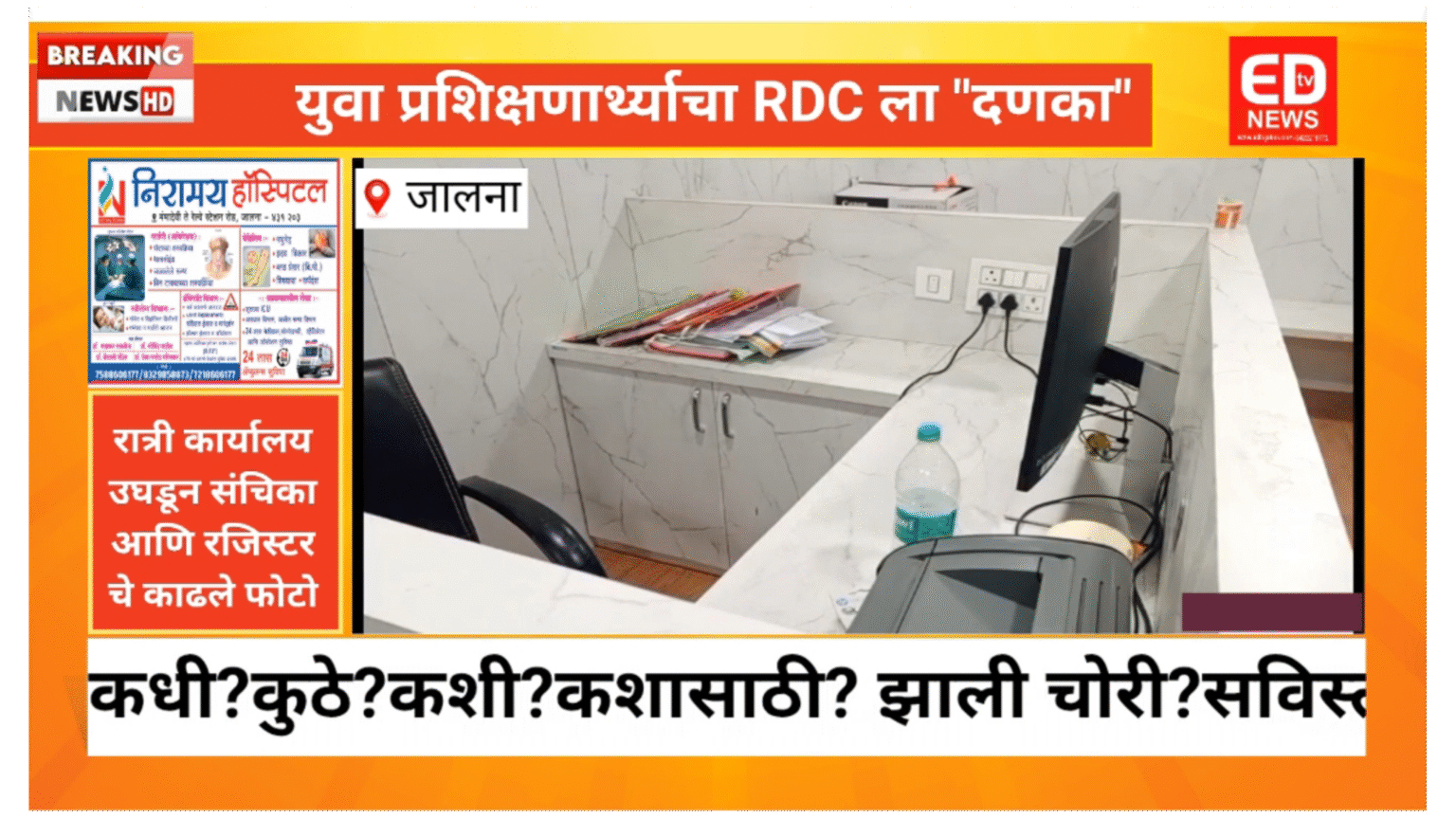 जालना- मुख्यमंत्री युवा प्रशिक्षणार्थी उपक्रमांतर्गत कर्मचारी म्हणून काम करत असलेल्या सागर भगवान पुरी, राहणार योगेश नगर अंबड रोड जालना याने प्रशिक्षणाचा कालावधी संपताच दुसऱ्याच दिवशी निवासी उपजिल्हाधिकारी यांच्या दालनात चोरी केली. हा सर्व प्रकार सीसीटीव्ही कॅमेरा मध्ये कैद झाला आहे. दरम्यान तत्कालीन निवासी उपजिल्हाधिकारी गणेश महाडिक आणि एका भाजपा आमदाराने केलेल्या पत्रव्यवहारांसंदर्भात आवक जावक रजिस्टर मधील नोंदिचे फोटो त्याने काढले असल्याची शक्यता आहे. त्यामुळे कोणाला कोणाला वाचवण्यासाठी आणि कोणाला अडकवण्यासाठी ही जोखीम पत्करून त्याने हा खटाटोप केला आहे हे लवकरच पुढे येईल. पोलिसांनी त्याच्याकडून भ्रमणध्वनी जप्त केला आहे परंतु त्यामधील काही मॅटर त्याने डिलीट केले आहे.