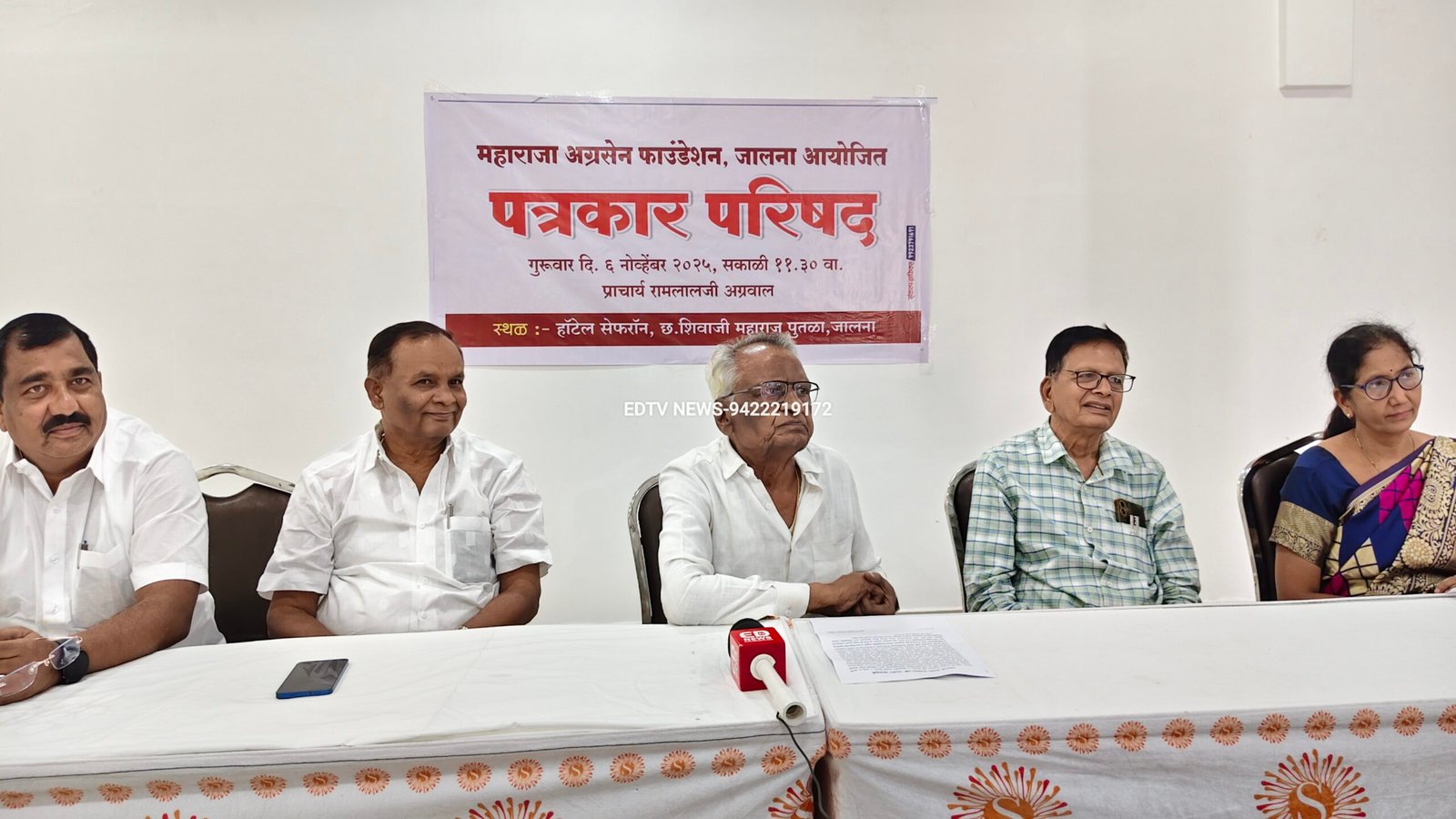 जालना- आर्थिक दृष्ट्या दुर्बल आणि मागास असलेल्या विद्यार्थ्यांना महाराजा अग्रसेन फाउंडेशन तर्फे अग्रसेन शिष्यवृत्ती देण्यात येणार आहे यासंदर्भात या फाउंडेशनच्या वतीने घेण्यात आलेल्या पत्रकार परिषदेत प्राचार्य डॉ. रामलाल अग्रवाल यांनी सविस्तर माहिती दिली. यावेळी प्राचार्य डॉ शिवाजीराव मदन प्राध्यापक डॉ. दिलीप अर्जुने ,प्राध्यापक श्री बोराडे, श्रीमती प्रतिभा श्रीपत यांची उपस्थिती होती.