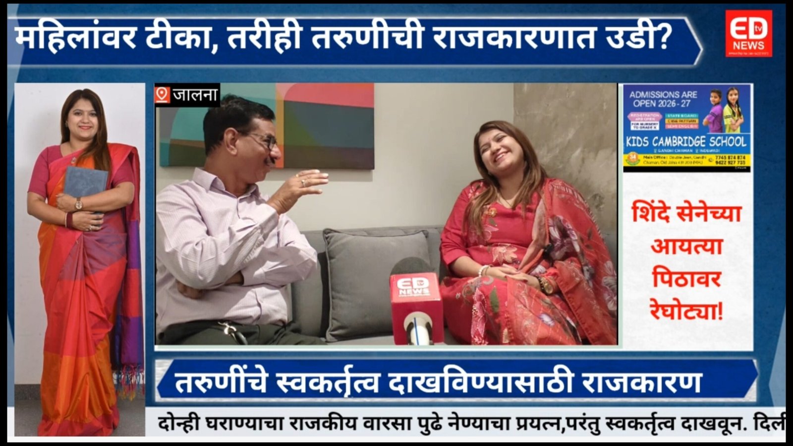जालना एकीकडे राजकीय महिला आरोप प्रत्यारोपाने बदनाम होत असताना दुसरीकडे जालन्यात एका युवतीने उद्धव बाळासाहेब ठाकरे शिवसेनेच्या महिला आघाडीच्या जिल्हाप्रमुख म्हणून मशाल हाती घेतली आहे. कशासाठी घेतली असेल जनतेच्या आरोप प्रत्यारोपांना त्या कशा तोंड देतील या सर्व प्रश्नांची उत्तरे Edtv News ने घेतकेल्या मुलाखतीमध्ये  दिली आहेत.